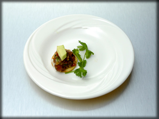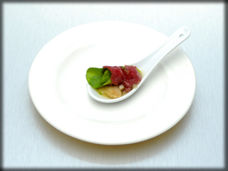 Beef Carpaccio with Watercress & Fried Caper, Shiitake Broth