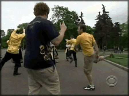 Mom/son got to the park at the same time as the frat boys. They were both running to the pony at the same time. If only it was the pit stop. The frat boys had to do their speed bump first, but before that happened, mom/son weren’t able to get their clue because they didn’t take a taxi to the park. They went to find a taxi. Now on to the speed bump for the frat boys. They had to perform a Russian dance. Uh-oh! Dan has no rhythm! How will he complete this task? While they were practicing the dance, Toni & Dallas were asking two Russian men if they could help them get back to the apartment. They told them what bus to take and gave them all the money they had on them. Team S&M got on a bus and hoped it was a trolley bus to get to the next place. The driver did say it would take them where they wanted to go. The frat boys completed one dance, but the instructor said it was no good so they had to go again.