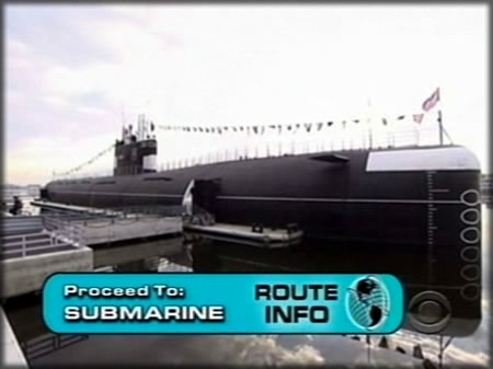 All the teams found taxis and the submarine without any problems. The first three teams arrived at the submarine at pretty much the same time. The frat guys had to be a bit more behind them. They all went running around the submarine looking for the officer with the clue. Dallas found it first, followed by Ken and then Nick.