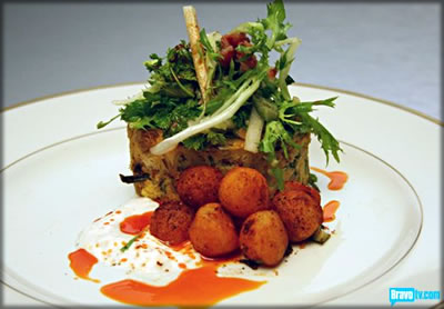 The chefs were able to pick their partners. Apparently no one wanted Amanda or Steve. I can understand Steve because he’s a wackjob, but Amanda just did really well during the grilling challenge. Tiffany was worried about being paired with Tim since he had been in the bottom recently. She told him to trust her on the breakfast. She concentrated on that dish with the hopes that they wouldn’t have to go any farther. Ed wasn’t thrilled he ended up with Alex. They are like the odd couple.