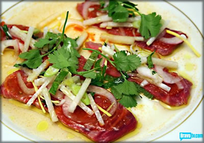 Slivers of Beef, Jicama-Asian Pear Salad with Mint, Cilantro & Kimchi Vinaigrette