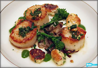 Sea Scallops with Ricotta Gnudi & Broccoli Rabe