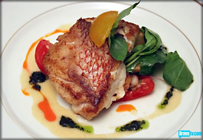 Crispy Skin Red Snapper & Panzanella Salad with Mustard Vinaigrette