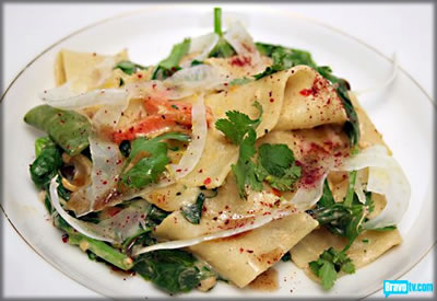 Spike and Eric said the pasta wasn’t cooked enough. Eric said the sauce was good. Nora loved the balance of the dish. Spike thought it made more sense conceptually more than the other two dishes.