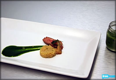 Tom asked Tamesha how she made the licorice oil. She said she took licorice power and had it steep in grape seed oil. Tom said he liked that the puree had a little texture to it and it wasn’t completely pureed. He also really liked the licorice oil.