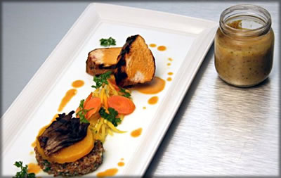 Curried Chicken, Mango Salad, Confit of Butternut Squash & Maitake Mushrooms