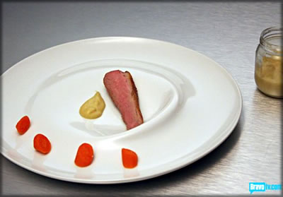 While Padma was trying the baby food version, she spit out a lemon seed. Not good! Pamda said that her meat was cooked fine, but it was a little bland. She just wanted her dish to have more flavor.