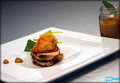 Spike said he liked the confit bacon. Mike agreed saying that everywhere you go, you get crispy bacon. Padma wished the pancetta had been cubed and they had rendered the fat off.  That sounds pretty darn fancy Padma!