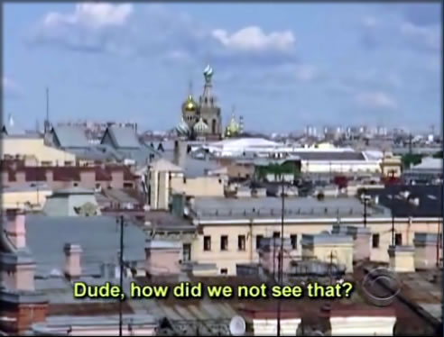 Clue: The clue was a riddle that would lead them to Peter and Paul Fortress. Once there, they would have to search for their next clue.