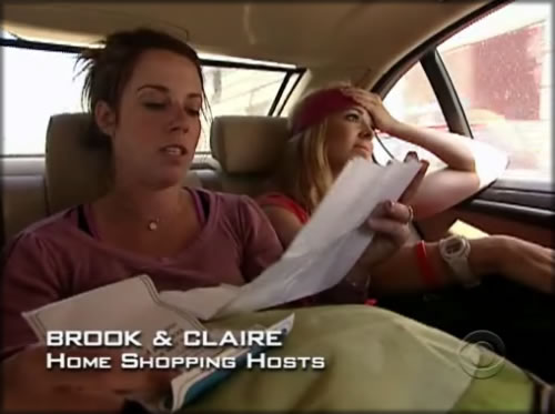 The father/son team arrived and found the tower. They were waiting at the bottom for someone to come back down. The home shopping queens finally found the tower and ran up. Kevin made a comment that they were carrying their bags. Brook informed him that they were supposed to leave their cab and walk. Uh-oh!