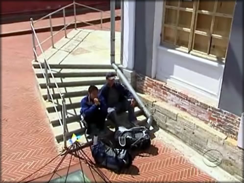 Chad’s time of patience was over. He was getting more and more frustrated each time that Stephanie missed. We found out that what Jill was holding was American dollars so Thomas had given all his rubles and then told the cab driver all they had left was American dollars. They gave it to him and took off running to Phil. Kevin & Michael were still arguing with their cab driver. I think they might have had American dollars too. Jill & Thomas checked in with Phil for fifth place. Jill thought they were in sixth. Michael finally found $40 American dollars somewhere and gave it to the cab driver, who finally let go of their bags. As they ran by Chad & Stephanie, she finally knocked over her third formation. They got the clue. They didn’t have their bags. Chad asked if they wanted to get their bags or just leave them since they had a shot of staying in. Stephanie said she would follow him so they just ran to find Phil.