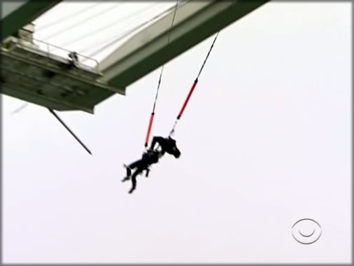 The doctors headed back to their taxi around the time that Jill & Thomas finished up their bungee swing and were getting back onto land. The home shopping queens dropped next. Brook freaked out a bit during the fall, but they survived. Jill & Thomas took off as the home shopping queens were getting back to land.