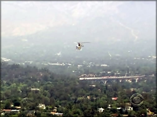 All the teams appreciated flying in the helicopter over L.A. instead of having to drive through it. The helicopter landed in the parking lot of the Rose Bowl. When they found the clue box, it was a road block.