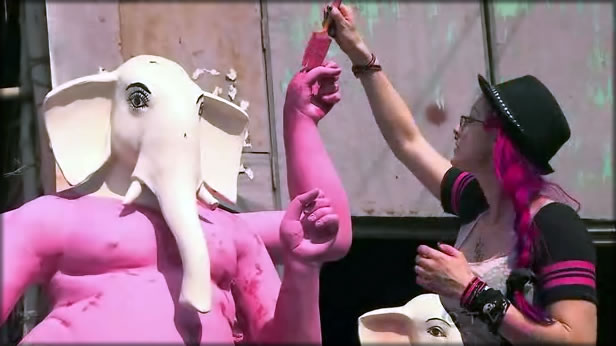 Around that time, Gary & Mallory delivered their books and got the clue to the pit stop, which had them find the Fountain of Joy in the city’s biggest park. At the art task, Kynt said they had to paint on eyebrows that looked a lot like theirs. Their practice with painting on their own faces helped them finish the task quickly. I just know they need to not forget to put on their eyebrows or I’ll get scared! Christina and Kisha were wondering if the goddess was for fertility because she looked pregnant or if she just had a big gut. Ron finally decided to get with the music and started to dance while he painted.