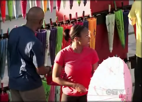 I am wondering if the puzzle part of the parasol challenge was just too much and if they edited it out? It did seem really odd with the long explanation and then it was just grab a parasol, show to Phil, rinse, repeat as needed. I also felt that the balloon billboard was a little sneaky – traditionally things have been marked the the red/yellow lines and/or arrows and while everyone eventually got it, I feel that it was easy to over look – I did like the guy with the red and yellow undies, that was awesome.