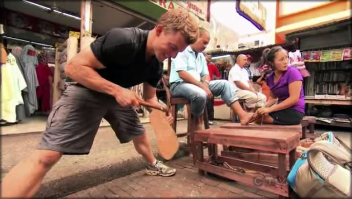 Teams started out in Belgium where they had to dress up as detectives from the comic strip “Adventures of Tin Tin”. They had to figure out the names of the characters. They were one of three different names. All the teams left the pit stop in the middle of the night so they ran into a lot of drunk Belgians. Some knew who they were while others didn’t. The snowboarders were told by one guy that they looked like Charlie Chaplin, which they did. They didn’t know who that was though. Really? At one point, they had figured out they had something to do with “Adventures of Tin Tin” while doing some research online but still thought they were Charlie Chaplin. They didn’t try to figure out how Charlie Chaplin could be related to Tin Tin or find the names of the comic strip characters while they were researching online. The other teams had no issues finding out the character names and they all got the clue before the snowboarders. It didn’t matter though since they all took the same train/plane combo to Panama City.