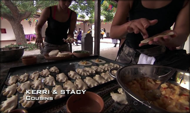 After the roadblock, the teams arrived at a task that had them make 120 empanadas. There were two different kinds, each with its own crimping style. The border agents were classy. First, they said they were like Chef Boyardee making the empanadas. Then, when the judge said they didn’t crimp correctly, one of them called her the “empanada nazi.” When Kentucky showed up, one of them said it was his first time making a “pinata.” He really didn’t know what they were called.